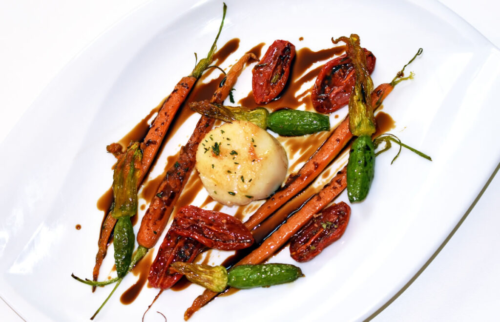 Gebratenes Gemüse, glasiert mit Balsamico-Essig und angebratenem Capa Santa