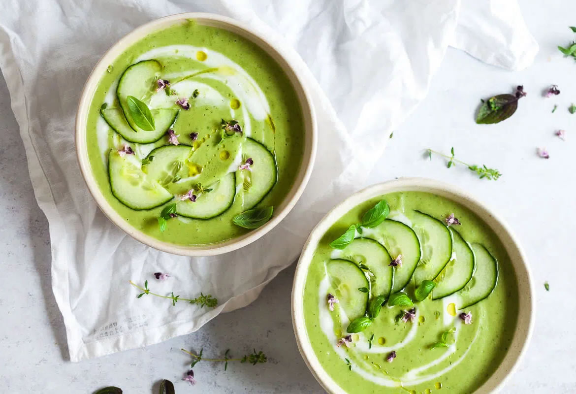 A questo punto occorre riunire tutte le verdure tagliate, la rucola spezzettata e il pane a pezzi in un frullatore. Prima di frullare ben ben, insaporite con sale, qualche cucchiaio di olio. Il composto deve essere frullato finemente. A questo punto il vostro Gazpacho è quasi pronto. Va servito con i cubetti di tofu, alcuni anelli di cipollotto e foglie di basilico. A piacere si possono aggiungere olio Extravergine di olive e l’immancabile Aceto Balsamico. Un piatto fresco, nutriente e che sarà sicuramente gradito da tutti!