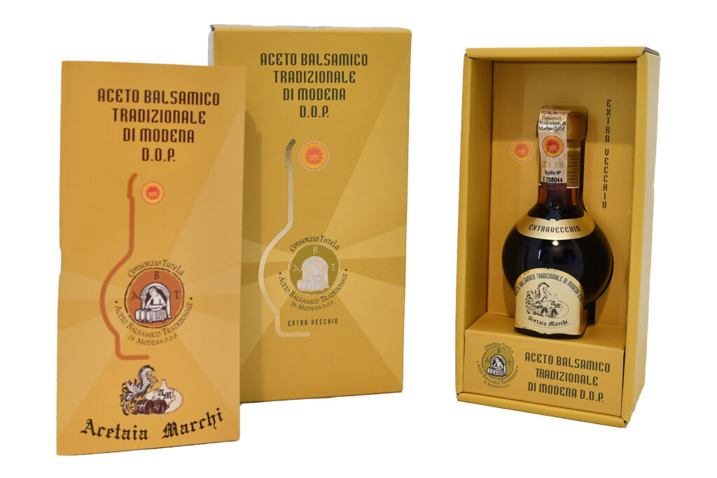 Viene considerato “extravecchio” un balsamico tradizionale che ha subito una maturazione in botte di almeno 25 anni. Questa tipologia di prodotto viene prelevata annualmente dalla botte più piccola. La sua produzione e l’imbottigliamento devono seguire le procedure fissate dal disciplinare di produzione. Il disciplinare obbliga i produttori ad imbottigliare l’Aceto Balsamico Tradizionale di Modena DOP in bottigliette da 100 ml, sigillate sul tappo con un contrassegno numerato.